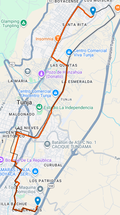 Cooservicios – La Fuente-Plaza de Bolívar — Terminal — ESE Santiago de Tunja – Cooservicios